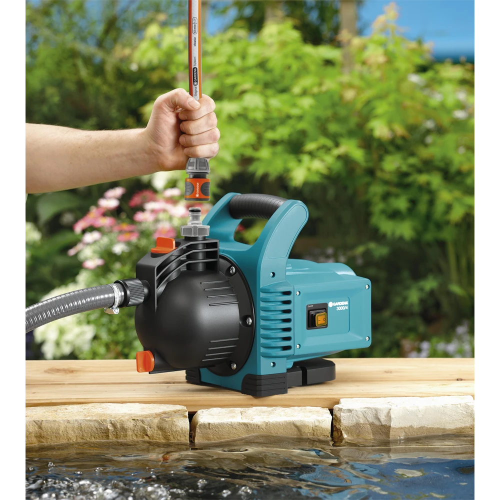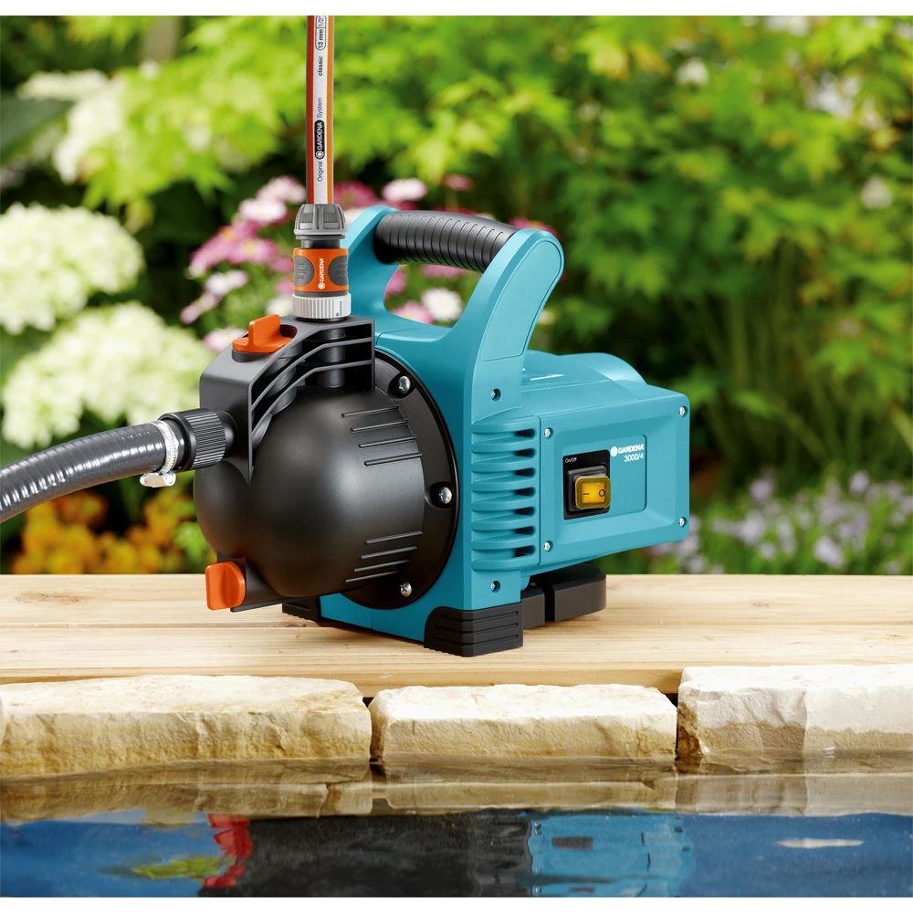 De compacte GARDENA Besproeiingspomp 3000/4 is het optimale instapmodel en kan worden gebruikt voor uiteenlopende doeleinden. Door het grote zuigvermogen en de hoge druk is deze pomp ideaal voor besproeiing, drukverhoging of het over- of verpompen van kraan-, regen- of chloorwater voor zwembaden. De pomp is licht en robuust, en eenvoudig in gebruik. Een grote vulopening maakt het vullen van de pomp voor het eerste gebruik eenvoudig en dankzij een ergonomische handgreep is de pomp eenvoudig te verplaatsen. De rubberen voetjes zorgen dat de pomp stabiel staat en met een laag geluids- en trillingsniveau werkt. Ter bescherming van de pomp tegen vorst en dus schade is de pomp voorzien van een aftapschroef voor het aftappen van het achtergebleven water in de pomp. Voor een lange levensduur vertrouwt GARDENA op hoogwaardige materialen. De keramische bescherming en een dubbele afdichting tussen de motor en het loopwerk van de pomp zorgen voor een veilige werking en voorkomen schade aan de pomp. Een thermische beveiligingsschakelaar beschermt de motor tegen overbelasting. Let op: pompen van GARDENA zijn niet geschikt voor het verpompen van zout water, agressieve of licht ontvlambare middelen of voedingsmiddelen.