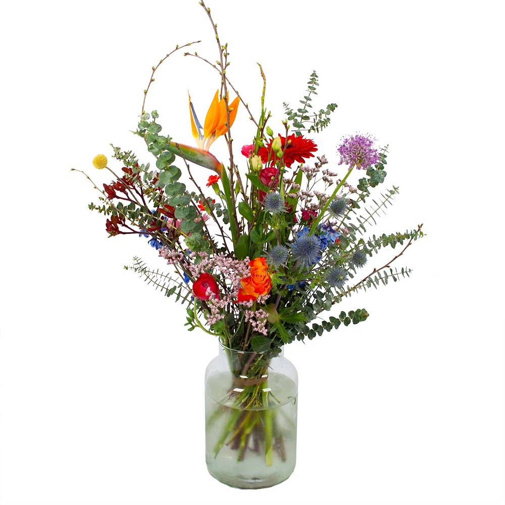 Met Boeket Deluxe Liefs mij haal je een kleurrijk veldboeket in huis! Geniet van het prachtige veldboeket met krachtige voorjaarskleuren. Altijd vers van de kweker! Verwen jezelf of verras iemand anders met een prachtig boeket. *Exclusief accessoires en vaas.